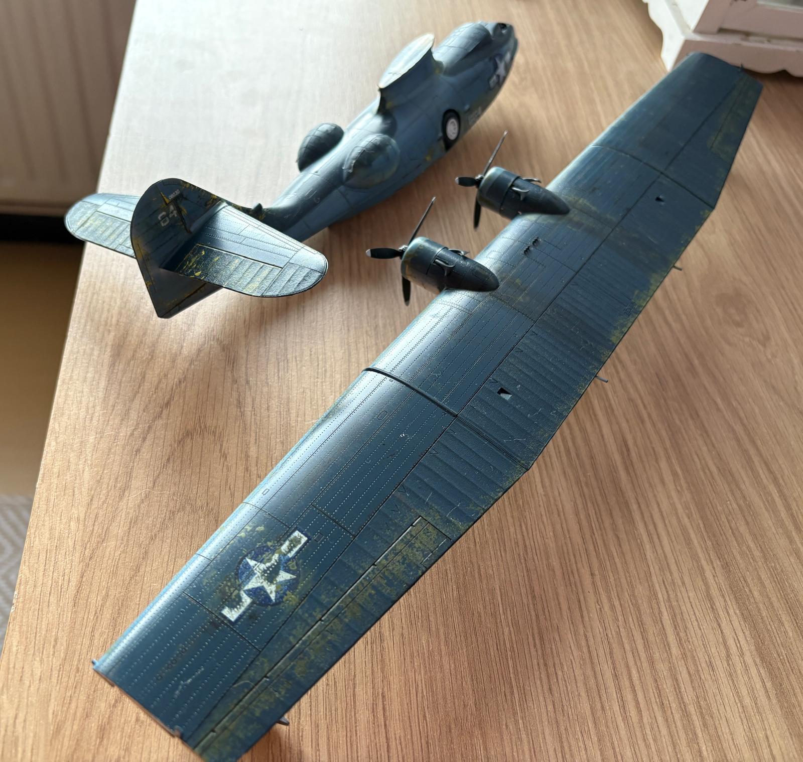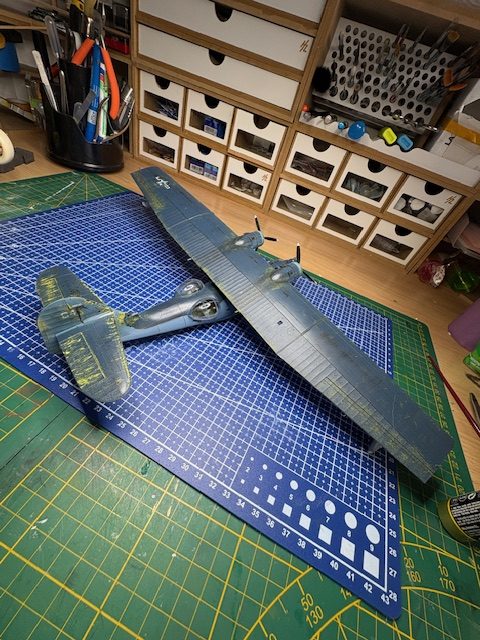 il ne serras pas de couleur noir mat comme prévue dans la version black-cat: avion nocturne mais au couleur diurne: bleu et blanc car je voudrais faire un diorama aquatique